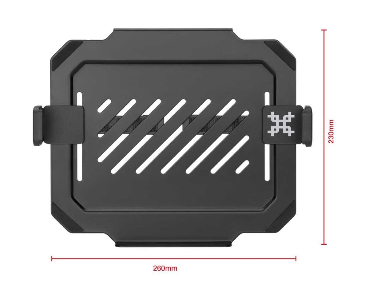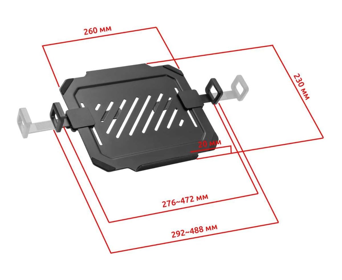 Специальные фиксаторы позволяют настраивать крепление под разные размеры ноутбуков, электронных книг, планшетов и надежно их закреплять специальным зажимом.