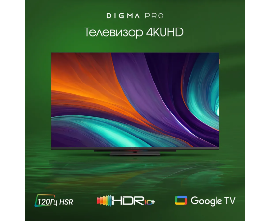 65" Телевизор Digma Pro QLED 65L черный/серебристый 3840x2160, 4K Ultra HD, 120 Гц, Wi-Fi, Smart TV, Google TV