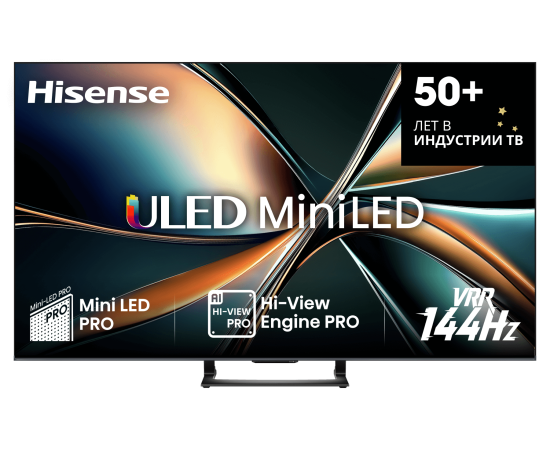 65" Телевизор Hisense 65U7Q QLED черный 3840x2160, 4K Ultra HD, 144 Гц, Wi-Fi, Smart TV, VIDAA