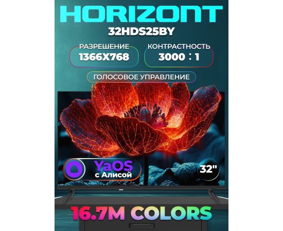 32" Телевизор Horizont 32HDS25BY черный 1366х768, Full HD, 60 Гц, Wi-Fi, Android TV, Яндекс ТВ