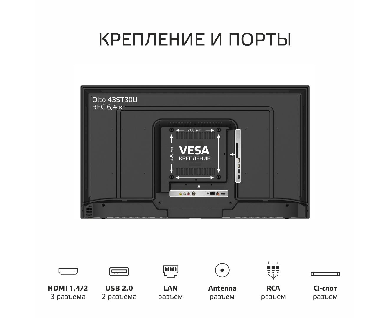 43" Телевизор OLTO 43ST30U черный 3840х2160, 4K Ultra HD, 60 Гц, Wi-Fi, Smart TV, Android TV