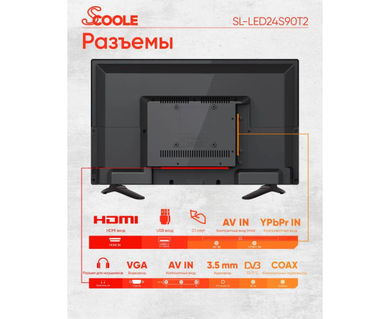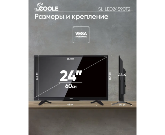 24" Телевизор Scoole SL-LED24S01T2S черный 1366x768, HD, 60 Гц