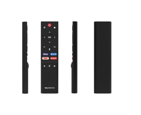 В комплекте с телевизором поставляются два пульта. Основной – традиционный со стандартным управлением и программируемой кнопкой прямого доступа к любимому онлайн-сервису. Дополнительный – с аудиоуправлением на базе голосового помощника.