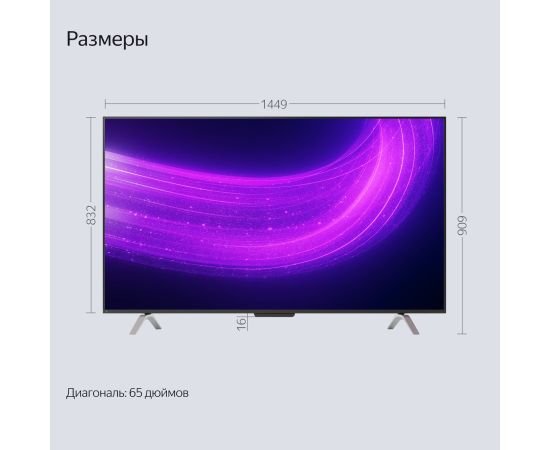 65" Телевизор YANDEX ТВ Станция Про с Алисой YNDX-00102 черный 3840x2160, 4K Ultra HD, 60 Гц, Wi-Fi, Smart TV, Яндекс ТВ