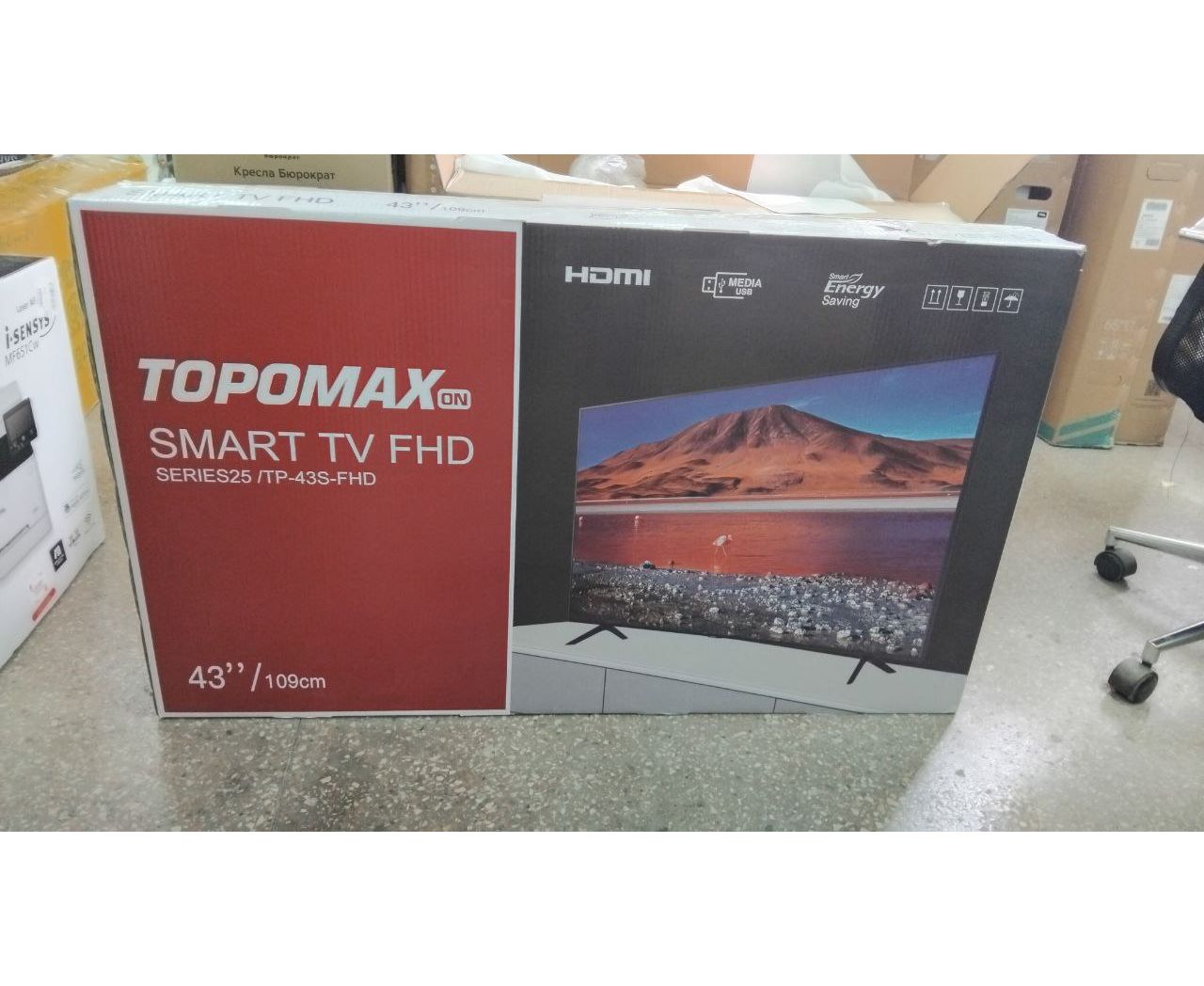 УЦ 43" Телевизор TOPOMAX (TM43FHSBK) черный 1920x1080, Full HD, 60 Гц, Wi-Fi, Smart TV, Android TV 14.0 (Следы эксплуатации. Полоса на дисплее. ПУ)