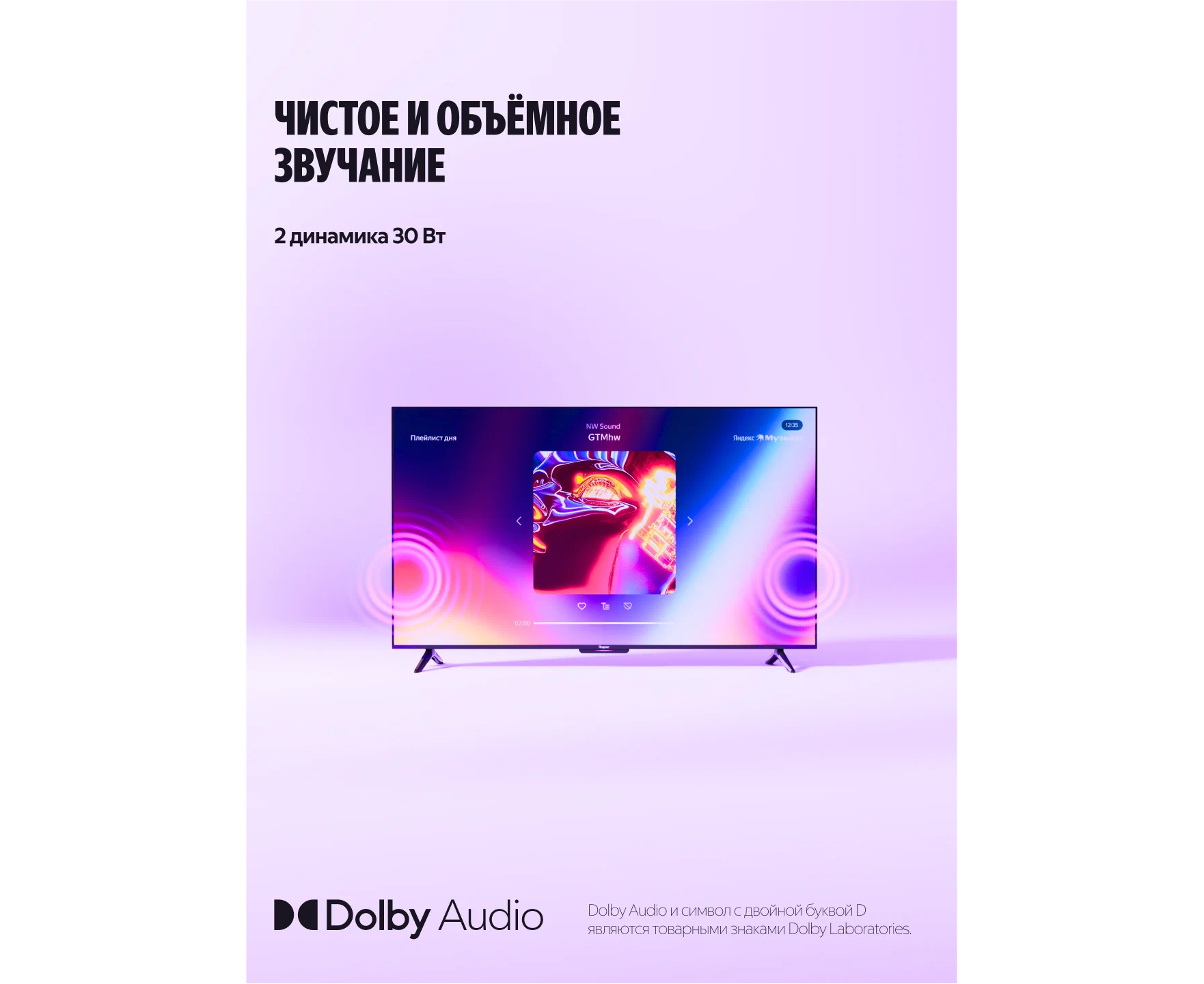 65" Телевизор YANDEX YNDX-00081 черный QLED 3840x2160, 4K Ultra HD, 60 Гц, WIFI, SMART TV, Яндекс ТВ Станция Про